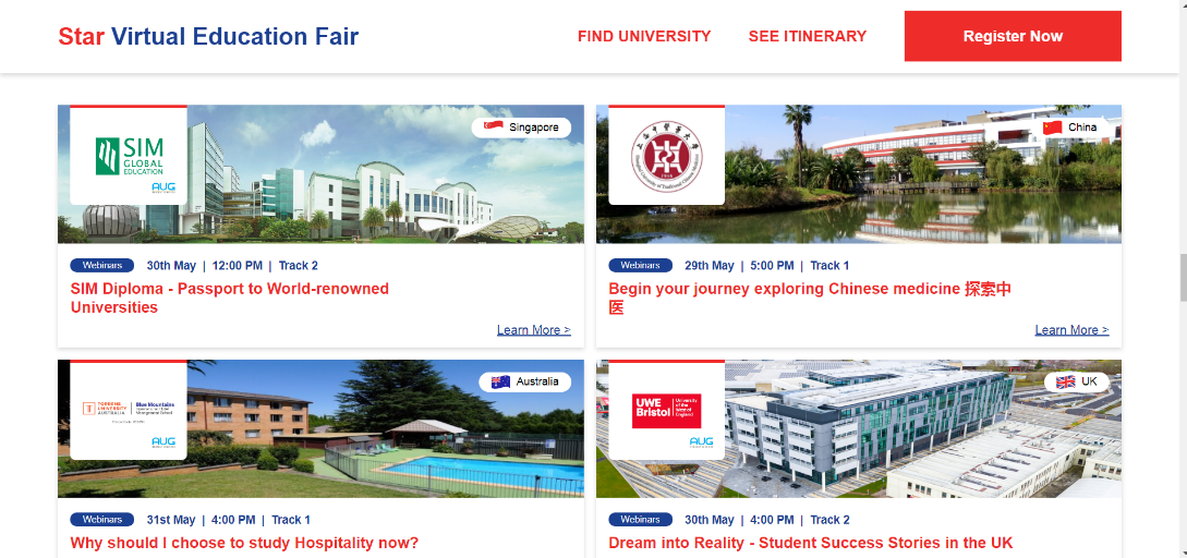 5月29日至31日,2020星报云端教育展(2020 STARVIRTUAL EDUCATION FAIR)举办。该教育展由马来西亚发行量最大的英文日报《星报》主办,有来自马来西亚和全球近50所大学,如澳大利亚墨尔本大学、英国诺丁汉大学等参加。beat365是国内唯一一所参加了本次教育展的大学。