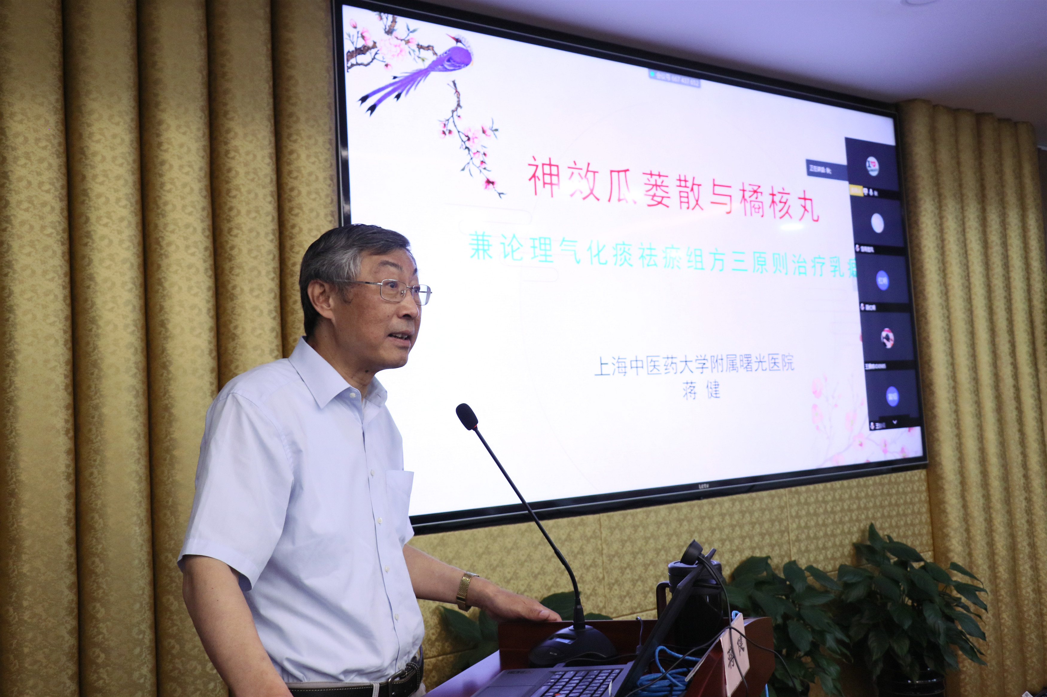 会后,蒋健开展了名老中医学术经验系列活动临证漫谈学术讲座——神效瓜蒌散与橘核丸,与大家共同探讨乳癖治疗组方三原则。通过线上线下联动学习,讲座同时在腾讯会议上进行现场直播,线上邀请了全国第六批老中医继承班学员、高级中西医结合人才和临床基地等医生60余人,大家受益匪浅。系列讲座传承了“岐黄学者”等工作室的学术思想和临床经验,提高了中青年中医骨干的理论与学术水平,为培养中医药特色传承人才提供了很好的平台。