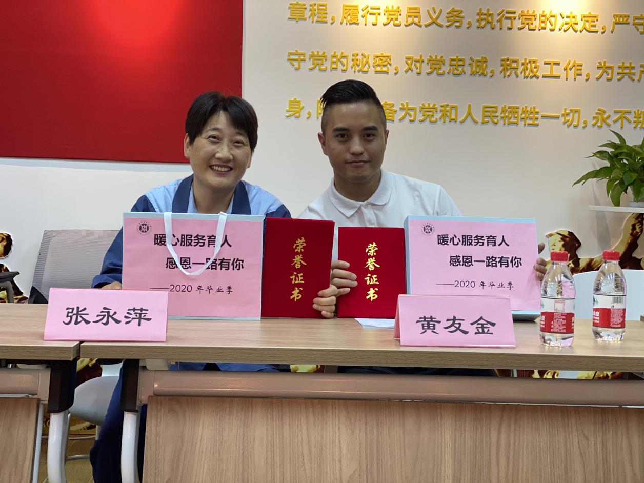 学生食堂一楼餐厅经理黄友金、留学生公寓宿管员张永萍作为获奖者代表分别作交流发言,表达了对本职工作的无限热爱和对毕业学子的深切祝福。虽然他们不是站在讲台前的专业教师,但是他们着力营造温馨和谐的校园环境,在平凡的岗位上发挥育人的功能,照顾好同学们的衣食住行,同样也是高校服务工作者的重要职责之一。