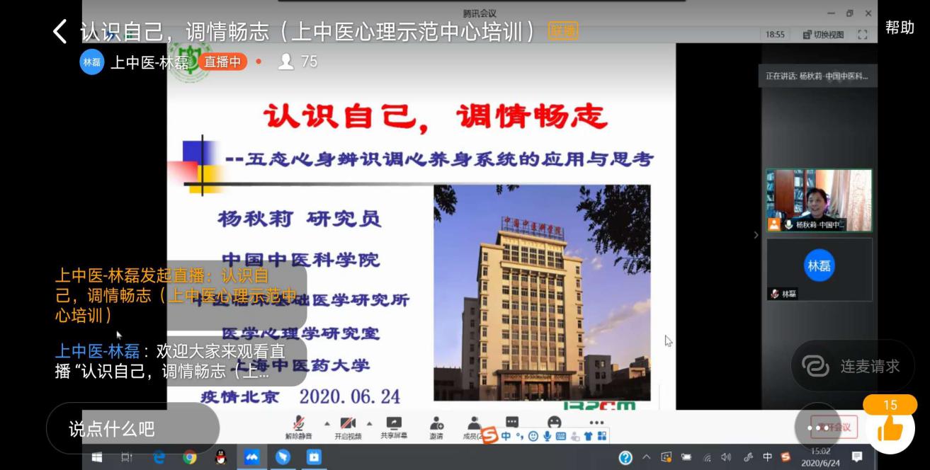本次培训汇聚了中医临床、心理学、中医心理学等领域的专家,聚焦于情绪调节的课程设计,强调以中医心理和传统文化为内部资源,形成了独具本土特色的培训内容。