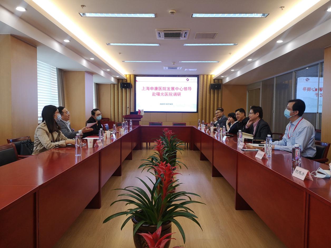1016日下午,上海申康医院发展中心副主任朱同玉一行前往附属曙光医院,就新冠疫情常态化防控、复工复产、进博会保障、“1+7”文件落实情况和安全生产等工作开展调研。上海申康医院发展中心医联工程与信息化部主任何萍等陪同。曙光医院院长周华副院长冯煜,党委副书记、纪委书记姚政,总会计师张新苹和相关职能部门负责人参加。