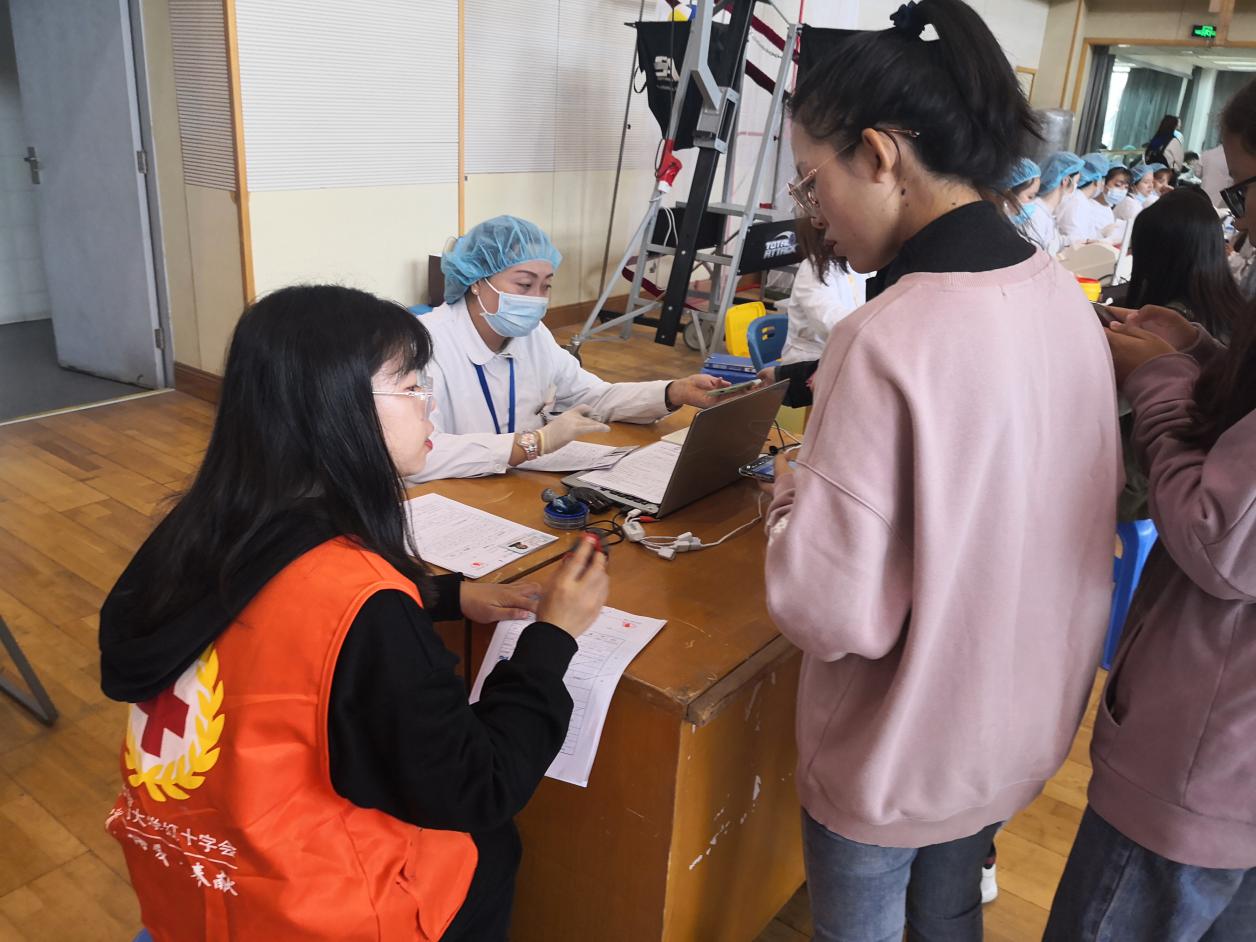活动中,各二级学院、后勤保障处相关负责人先后来到献血现场慰问献血学生、医护人员、红十字会志愿者。学生们积极参与,在采血点有序排队填表登记、体检、验血、采血、领献血证。校红十字会志愿者服务队学生积极提供保障服务,向献血师生发放献血宣传手册、讲解无偿献血知识,协助献血点医务人员维持秩序,悉心照顾献血后的师生,协助纪念品的发放登记。