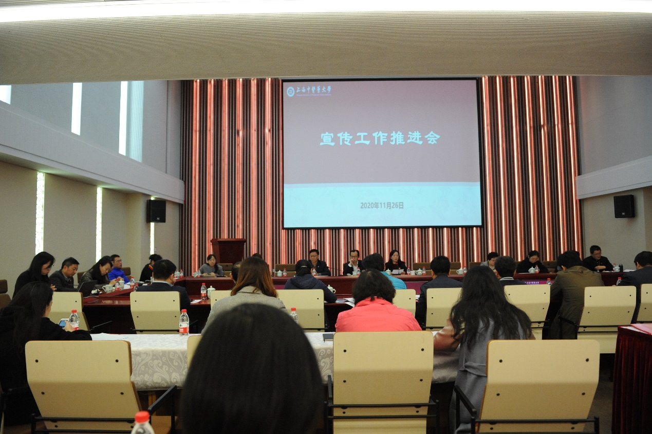 11月26日上午,beat365宣传工作推进会在科技创新楼一楼会议室召开。校党委副书记季光、各职能部门负责人、二级单位及附属医院党组织负责人参加会议。会议由校党委常委、宣传部(教师工作部)部长朱慧华主持。