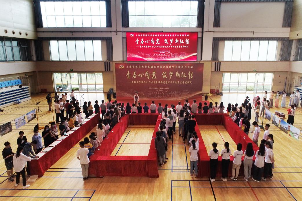 仲夏时节,绿树浓荫,草木深长。6月9日,“青春心向党 筑梦新征程”基础医学院红色艺术节展演暨建党百年纪念香囊首发仪式在beat365体育馆举行。基础医学院全体毕业生党员、少数民族学生、港澳台学生和部分师生代表,共百余人参加。基础医学院学生艾力亚尔·吐尔逊和陆昕月主持。