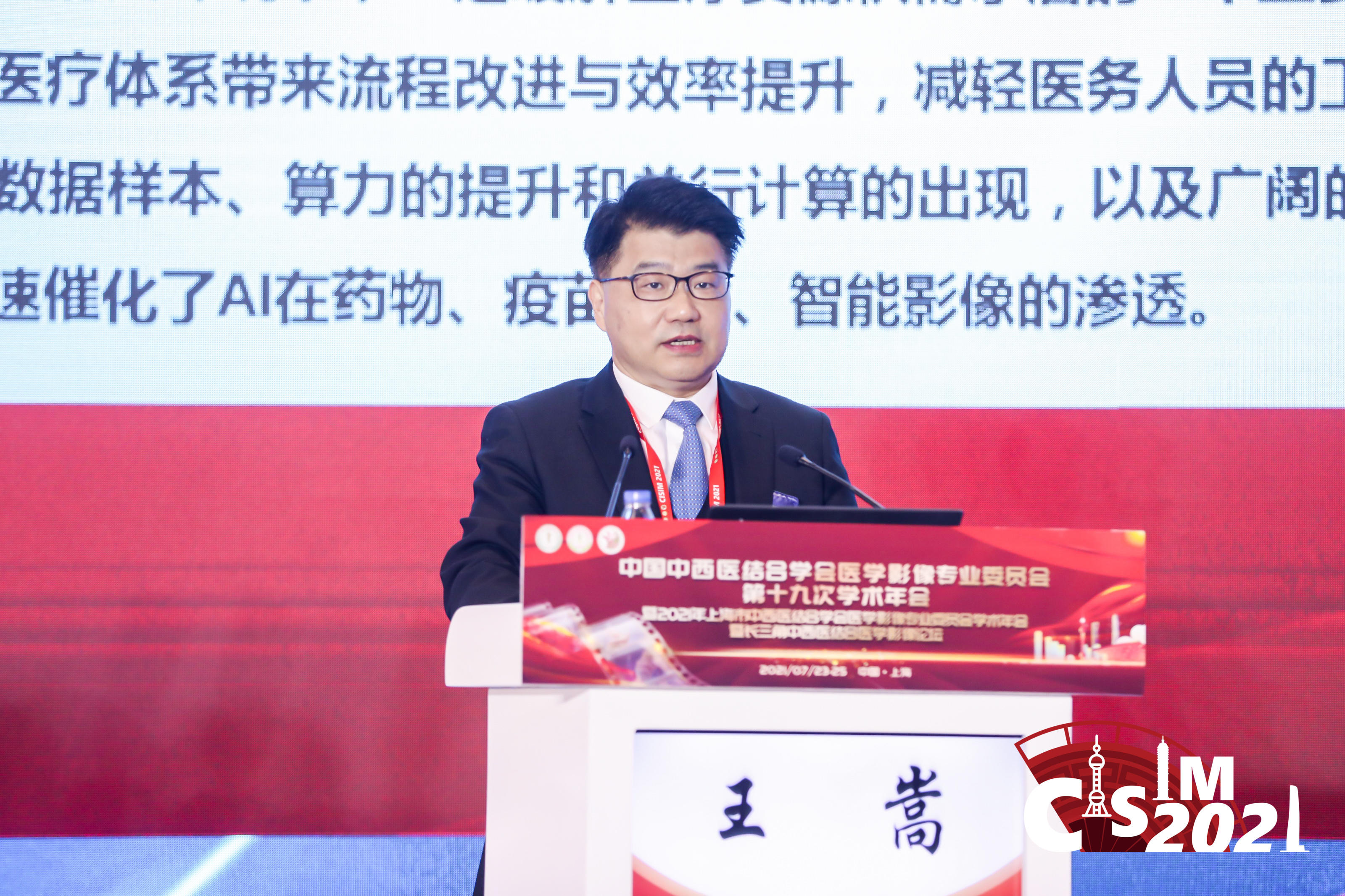 王嵩在大会发表主旨演讲《人工智能技术下的中西医结合影像发展新机遇》,他指出,影像学所具有的功能可视化技术是中医发展最有可能取得突破的主要技术手段,影像学如何在中医现代研究中发挥作用,如何寻找二者结合研究的交叉点,即影像学在中医领域的研究方法是解决这一热点问题的关键,人工智能技术拥有独立自主的诊疗功能,通过大数据学习可达到与临床专家高度匹配的诊疗结果,此时人工智能技术在临床辅助诊疗中可发挥一定的主动性。同时,还可利用已达到中医临床专家水平的人工智能技术培养中医人才,提高中医药传承效率,促进中医药传承。