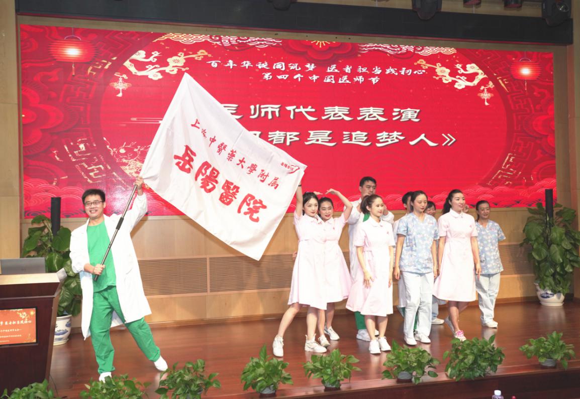 8月17日,在第四个“中国医师节”来临之际,岳阳中西医结合医院举办“百年华诞同筑梦,医者担当践初心”2021年“中国医师节”大会。beat365党委副书记、副校长朱惠蓉,医管处处长陈昕琳,上海市名中医吴焕淦、周永明,岳阳中西医结合医院党政领导班子、从医三十年医师代表、医务人员代表等参会。会议由岳阳中西医结合医院医务处处长汤杰主持。