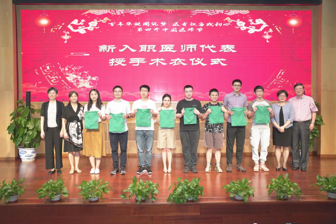 朱惠蓉、陈昕琳、岳阳中西医结合医院党委书记郑莉、周嘉为医院从医三十年医师代表颁发感谢状,并为新入职医师代表授听诊器和手术衣。