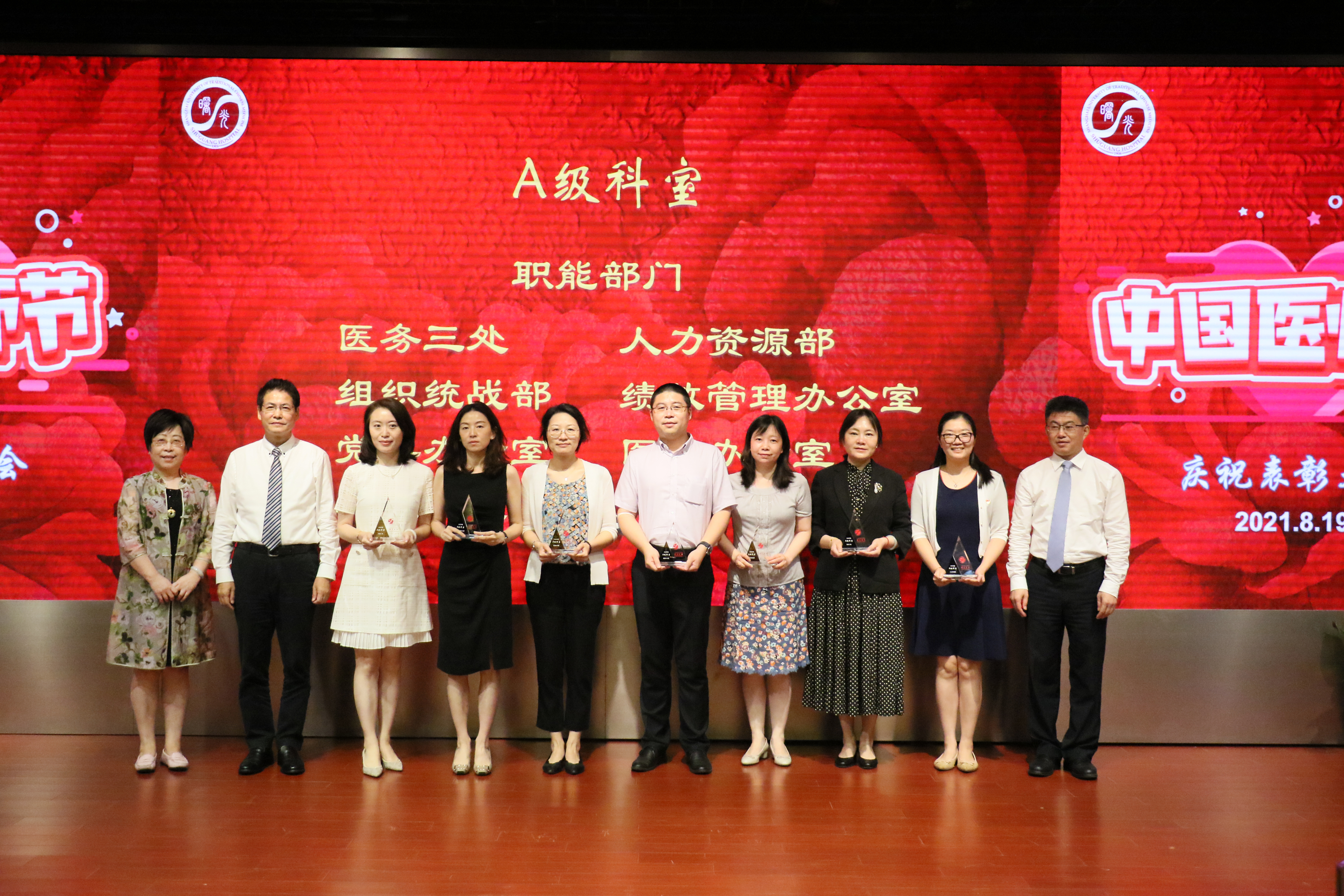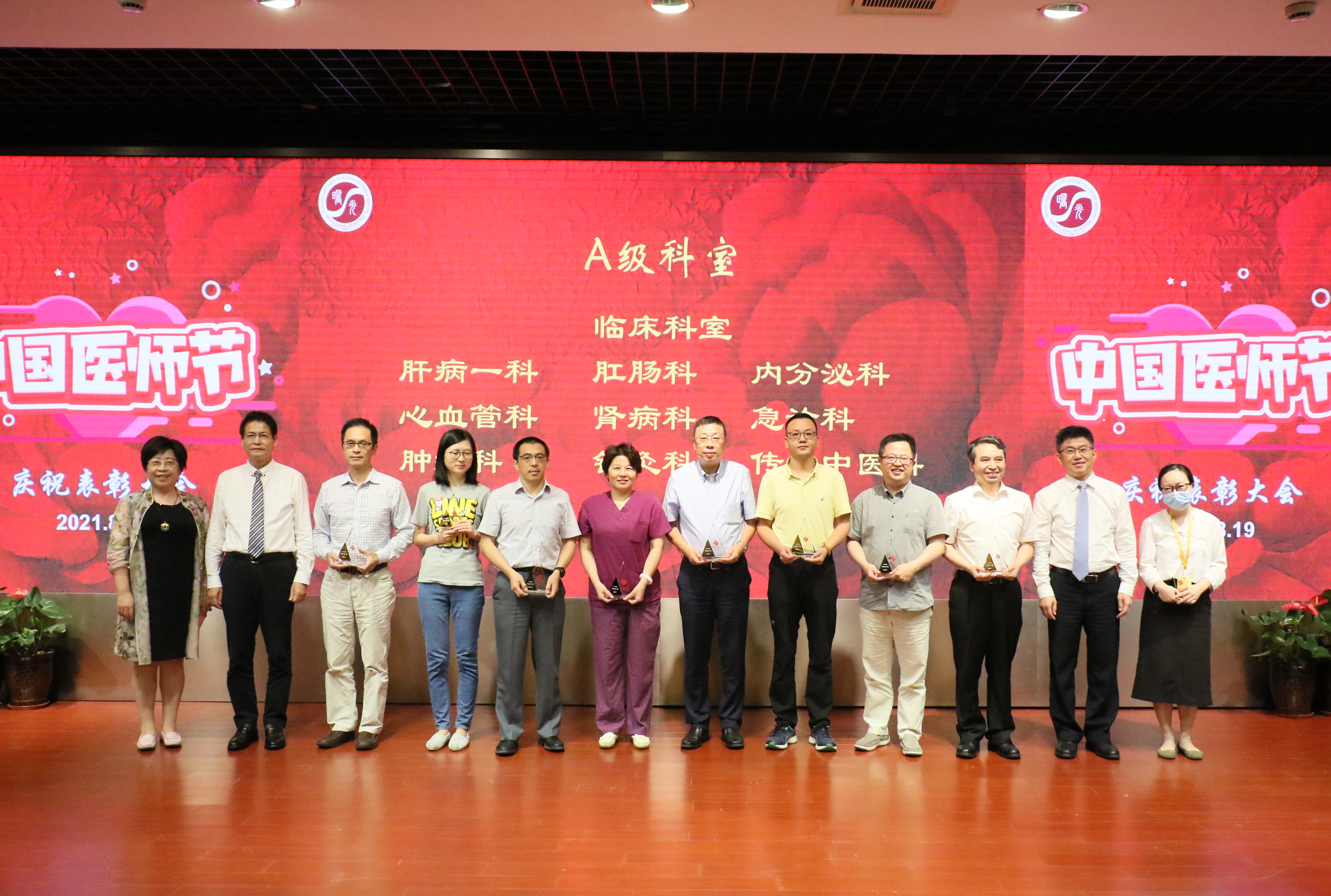 今年中国医师节以“百年华诞同筑梦,医者担当践初心”为主题,为提高医院内部管理能力,加快人才队伍建设,鼓励广大医师争先创优,努力提高技术水平,医院分别对获得优秀医师奖、卓越医师奖、突出贡献奖和终身成就奖的个人以及获得2020年度科室绩效考核A级的集体进行了表彰。