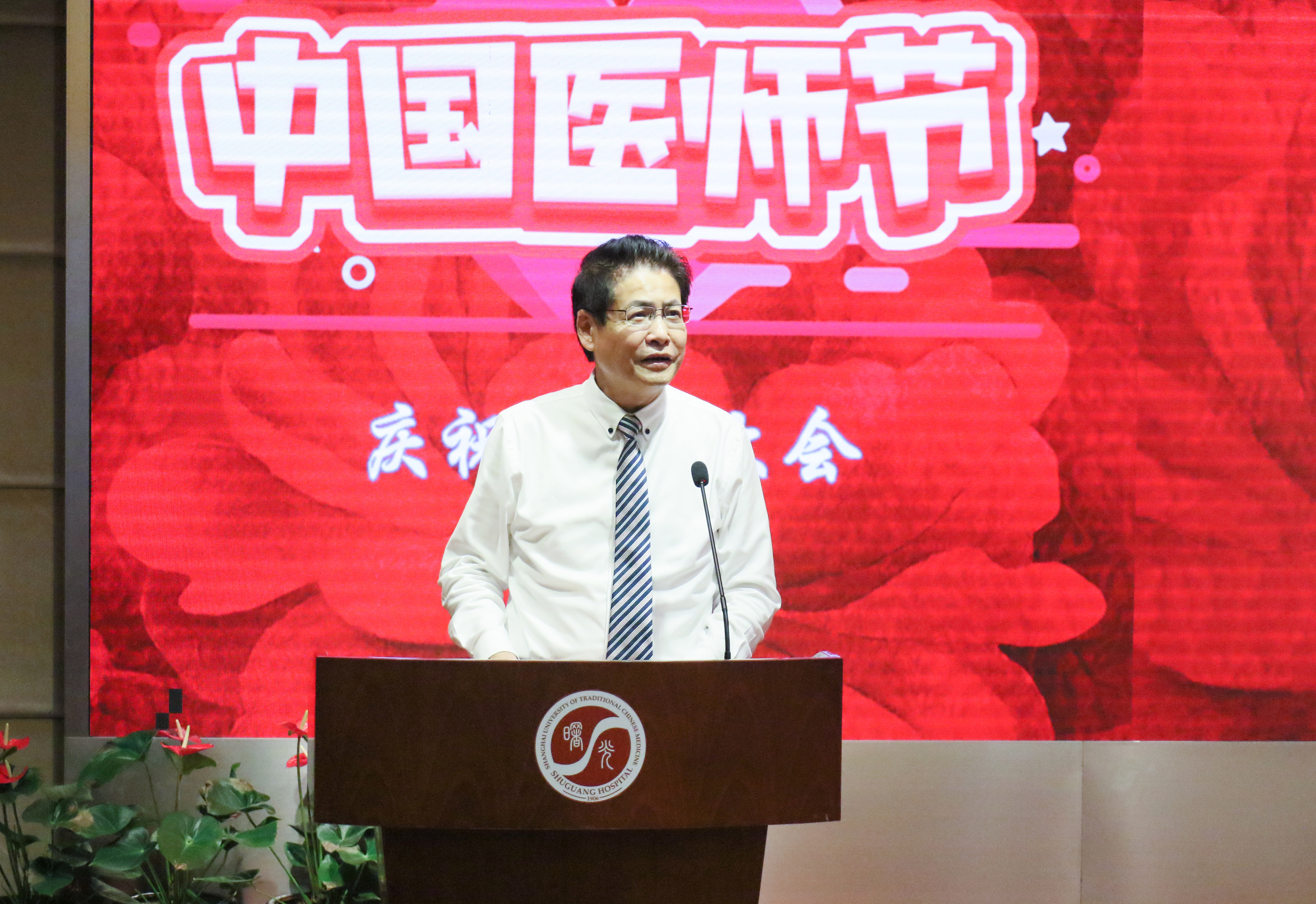 院长周华首先致辞,并代表医院党政班子向全院医师表达节日问候,向舍己为人、坚持抗疫的医师们表示衷心的感谢。在疫情防控常态化的大背景下,曙光医院医师时刻紧绷疫情防控这根弦,尽全力坚守人民群众生命安全和身体健康,不断继承和发扬医院“大医德泽、生命曙光”的精神。今年是“十四五”的开局之年, 在这个新的历史节点上,医院将继续坚持以人民群众健康为中心,大力弘扬中医药特色,在共同努力下,迎接更美好的未来。