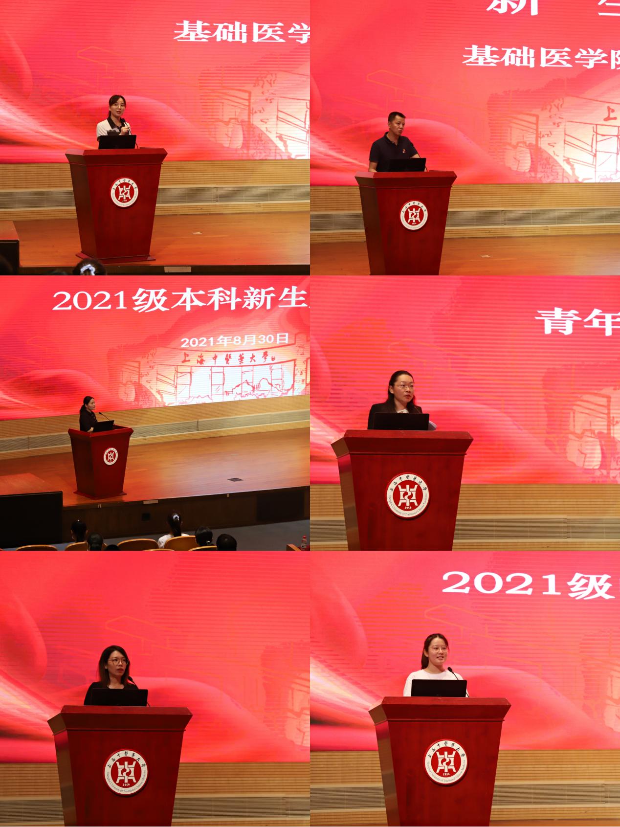 8月30日下午,基础医学院2021级本科新生见面会暨开学第一课在图书馆裙楼四楼报告厅举行。基础医学院党委书记夏文芳,院长吕嵘,副院长郑月娟、李海峰,以及辅导员、青年教师班主任、导师团导师代表等参加。会议由基础医学院党委副书记陆佩丽主持。