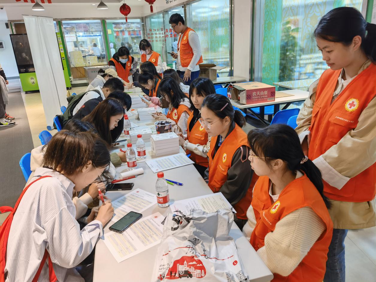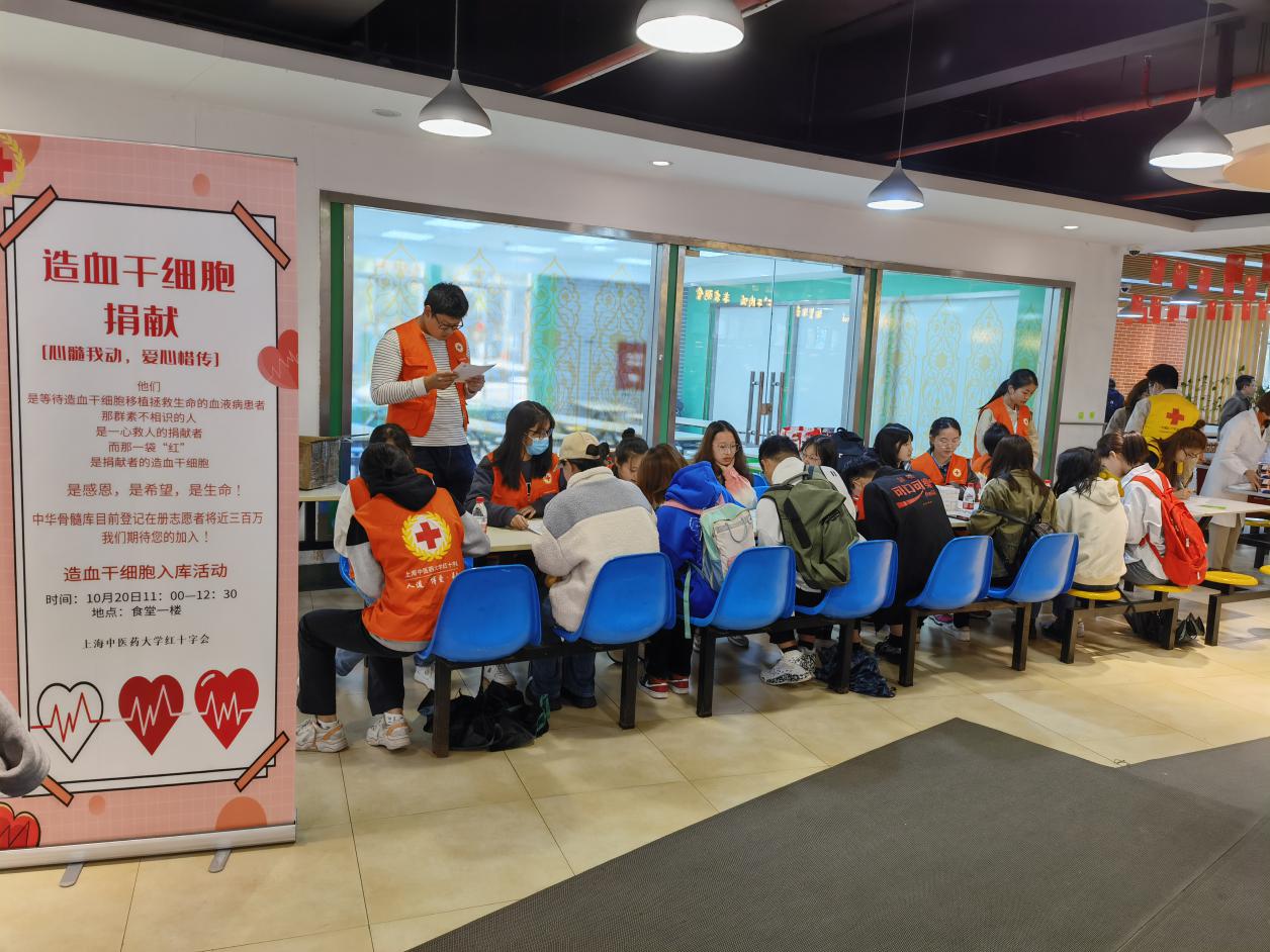 10月20日中午,校红十字会在学生食堂一楼开展捐献造血干细胞志愿者招募活动,现场采用“人体口腔粘膜试子样本”采集方式进行捐献志愿者的DNA留样,97名学生加入中国造血干细胞捐献者资料库(又称“中华骨髓库”)上海分库,为历年活动中招募学生最多的一次。