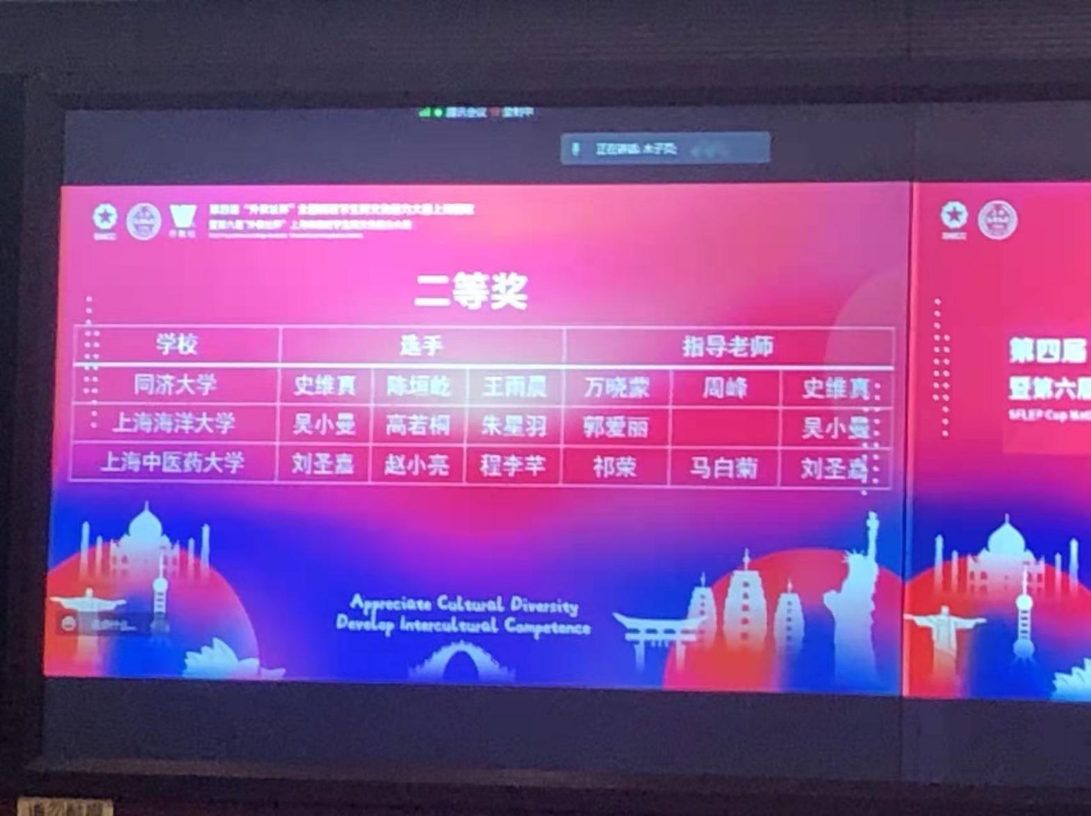 beat365学子获第六届“外教社杯”上海市高校学生跨文化能力大赛二等奖