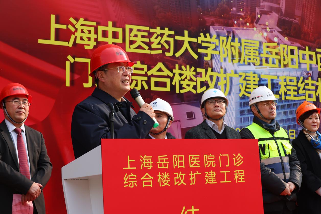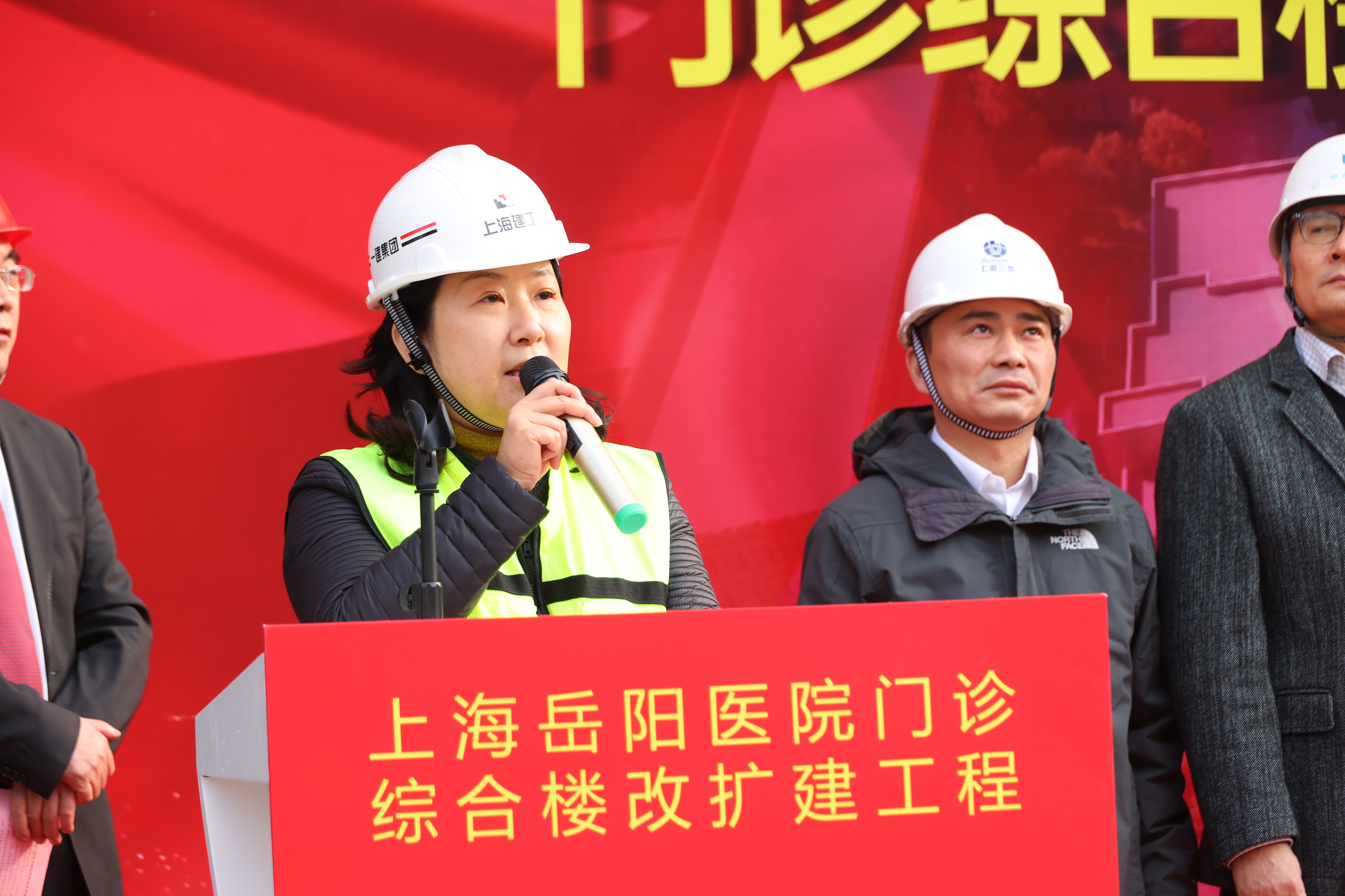 徐飚代表上海建工一建集团对岳阳医院门诊综合楼顺利封顶表示祝贺,并预祝工程建设取得圆满成功。在两年多的建设过程中,一建集团慎终如始抓好安全、品质、进度,力争为上海公共医疗卫生发展贡献力量。