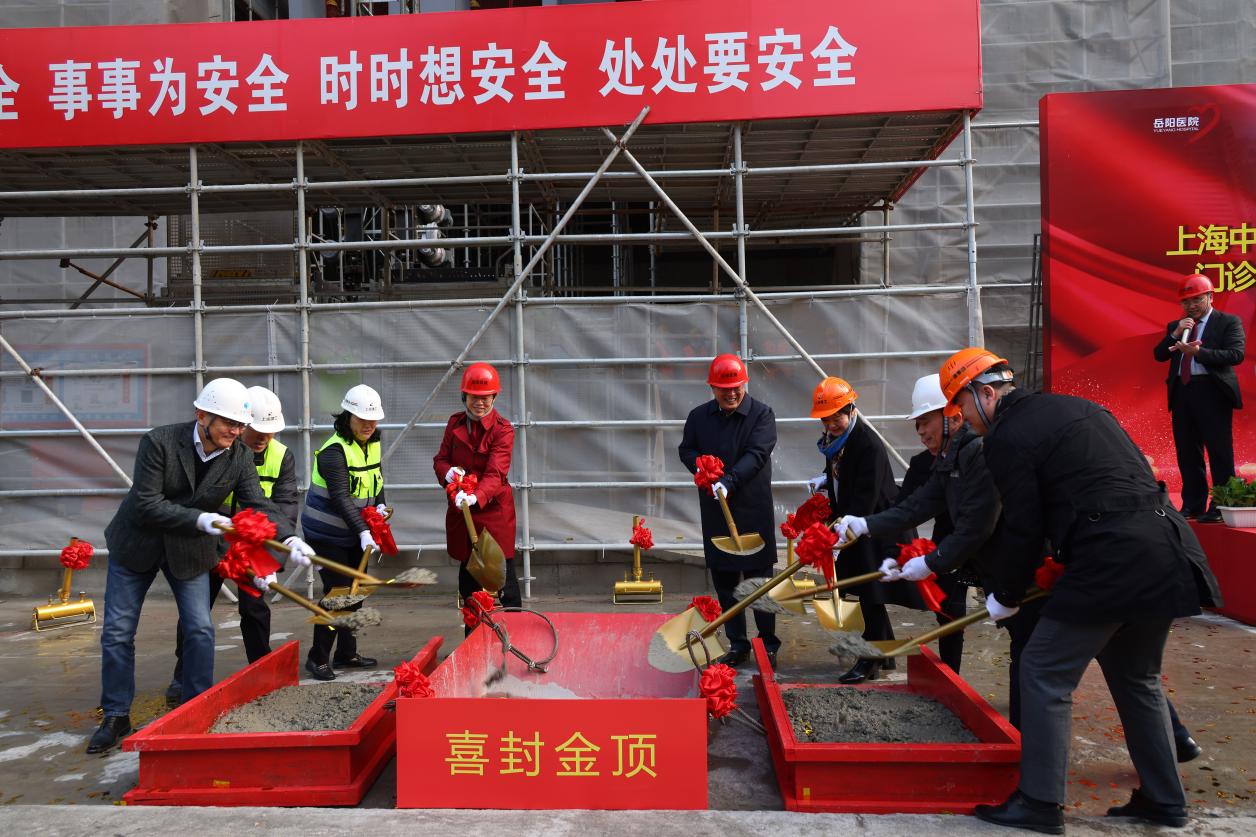 11月30日上午,被列入2019年上海市重大工程的“岳阳医院门诊综合楼改扩建项目”结构封顶仪式举行。上海申康卫生基建管理有限公司总经理姚蓁,上海申康卫生基建管理有限公司副总经理李俊,上海建工一建集团有限公司党委书记、董事长徐飚,上海建工一建集团有限公司党委委员、副总裁顾红羽,上海三凯工程咨询有限公司董事长、总经理曹一峰,华东建筑设计研究院有限公司副院长鲍亚仙,万隆建设工程咨询集团有限公司总经理罗俊,附属岳阳中西医结合医院党政领导班子及相关职能部门负责人参加仪式。仪式由医院副院长王见义主持。