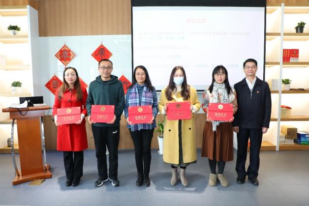 与会嘉宾及马克思主义学院领导为2021年度在国家级、市级、校级各类项目中获奖个人以及团队进行表彰。