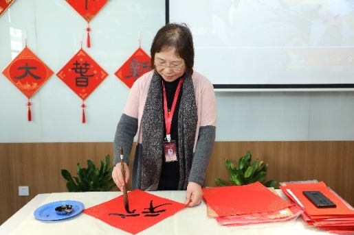 会前举行“迎虎纳福”庆新春活动,张静现场泼墨书写“福”字和春联,浓情笔墨传递新春祝福。