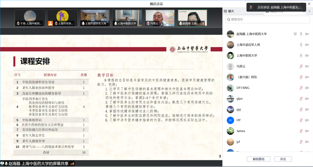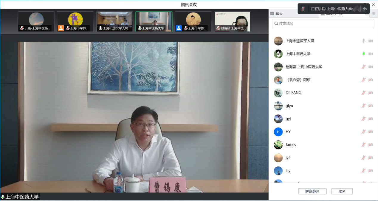 9月16日下午,上海市军休老年大学委托beat365开办的中医药养生与保健培训班启动仪式举行,我校党委书记曹锡康、上海退役军人事务局副局长屈新平、beat365公共健康学院院长赵海磊、市军休老年大学校长崔宗胜,部分授课专家和全体学员参加启动仪式。仪式由崔宗胜主持。