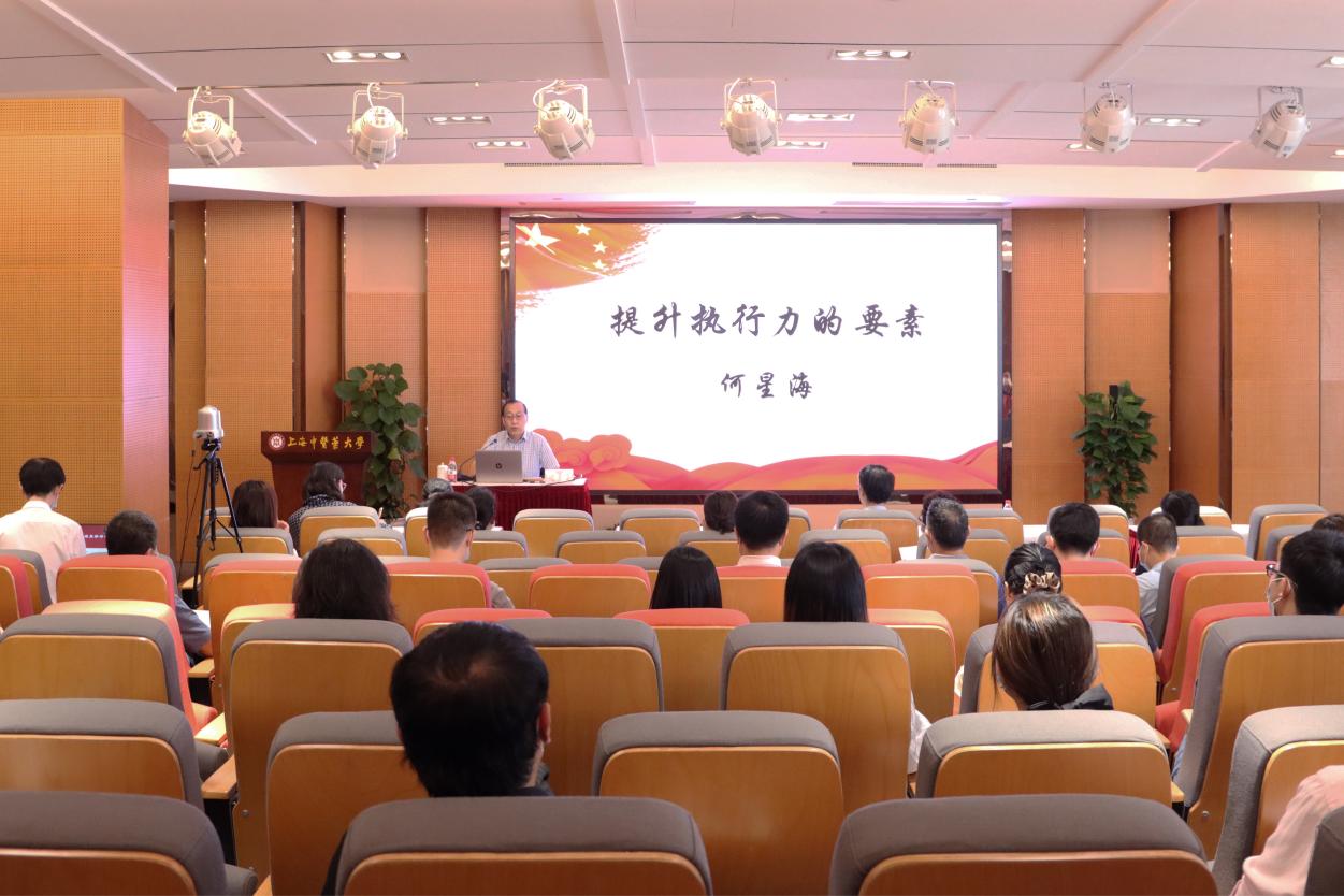 为认真学习贯彻中国共产党beat365手机版官方网站第八届委员会第十次全体(扩大)会议暨秋季学期工作会议精神,提升执行力狠抓工作落实。9月26日上午,机关党委在行政中心301会议室(主会场)、大学生创新创业实践园(分会场)举行专题报告会。原校党委副书记、副校长何星海就“提升执行力的要素”开展专题讲座。校党委副书记、纪委书记许铁峰,机关党委委员、各级党组织书记、部分党员参加学习会。学习会由机关党委副书记金霞主持。