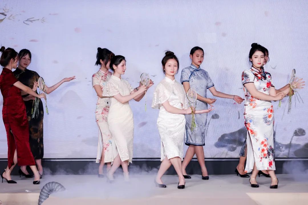 现场,淑女学堂学子与东华大学服装与艺术设计学院学生一同带来旗袍展示秀。