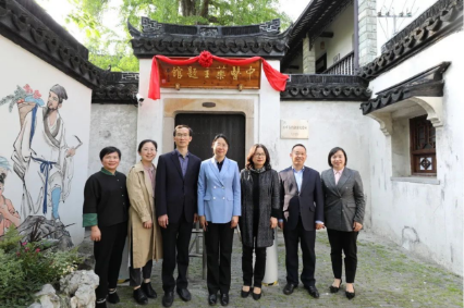 舒静、郑瑛、胡晓岚共同为中医药主题馆暨“百草有约”创新实验室揭牌,开启合作共建beat365手机版官方网站附属枫泾小学的新征程。