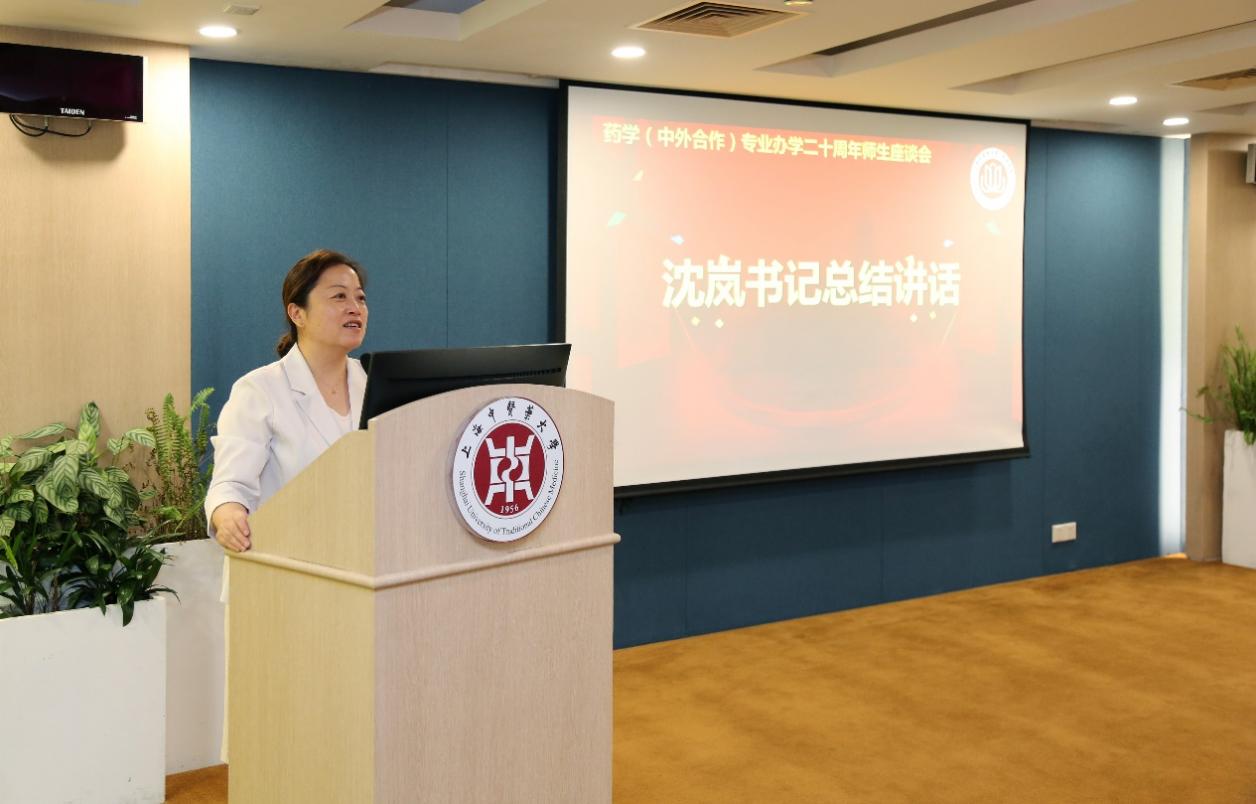 沈岚作会议总结并寄语,她希望药学专业以二十周年来的丰硕成果为新起点,继续加强办学资源共建共享、助力中国特色的国际化药学人才培养,为中医药事业的发展作出更大贡献,为推动药学领域的发展和创新注入新的活力。