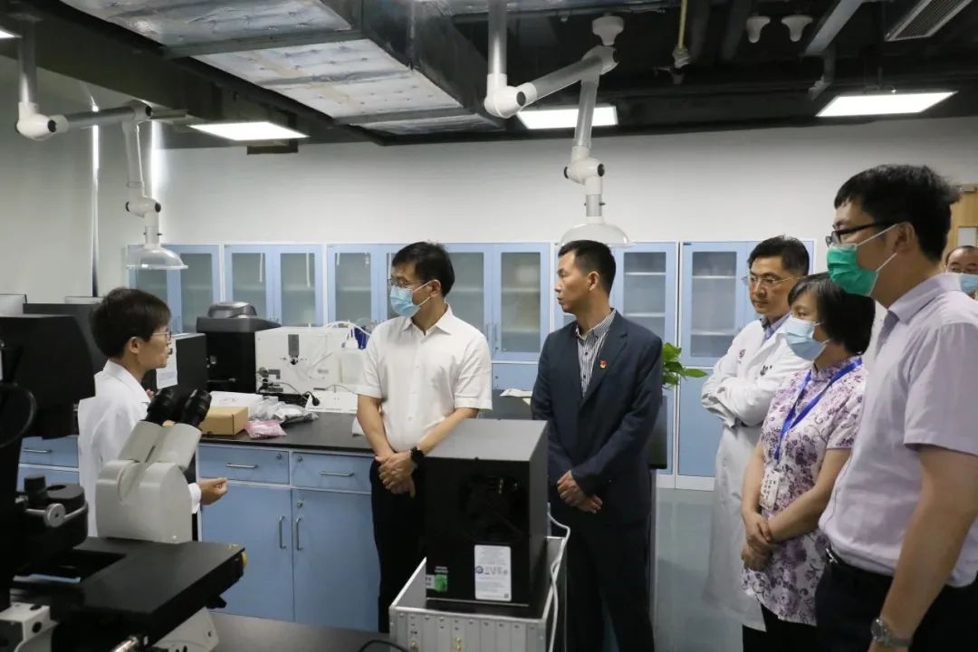 严华国一行先后走访了医院的临床研究中心、科技实验中心、推拿科病房、康复科病房。曙光医院临床研究中心常务副主任元唯安、科技实验中心主任孔晓妮分别介绍了医院依托国家中医疫病防治基地新建成的示范性研究型病房和科教楼科技实验平台的情况。曙光医院以建设“研究型中医院”、推动公立医院高质量发展为目标,加强领导、整体谋划、统筹推进、资源共享、形成合力,通过完善科技体制机制建设,做好有组织的科技创新,加强科技实验设备仪器等的使用与管理,更好地开展基础及应用研究,积极推进医院科研实验平台的共享与建设。冯煜还介绍了医院大康复学科、推拿学科等的临床业务发展及信息化建设和物联网应用经验。