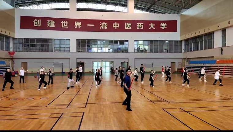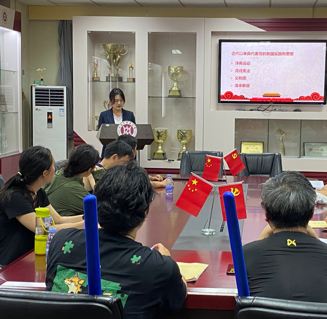 培训期间,我校党委组织部人员带来生动的党史学习教育课,引领每位学员满怀热情地走进武术兵道(短兵)训练场。