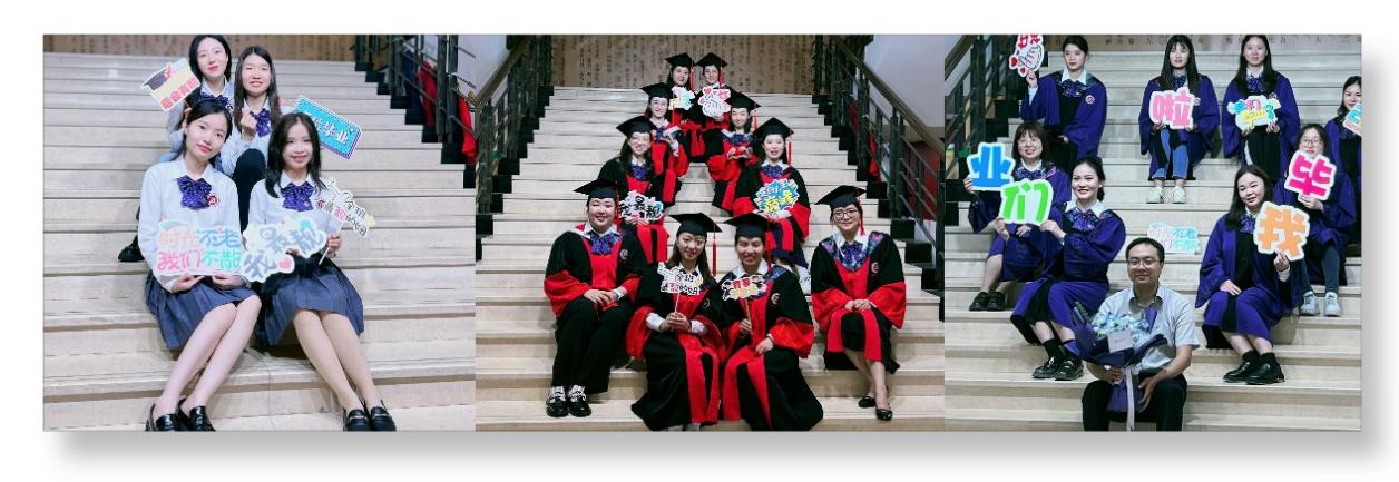 通往书库的阶梯上,色彩各异的励志牌,“青春无憾,后会有期”“时光不老,我们不散”……愿毕业生们青春不散场,热情不散场,愿出走半生,归来仍是少年。
