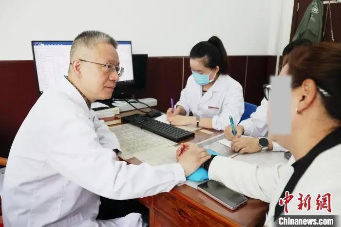 图为上海援青医疗人才、青海省中医院脑病科副主任迟大鹏接诊。张添福摄
