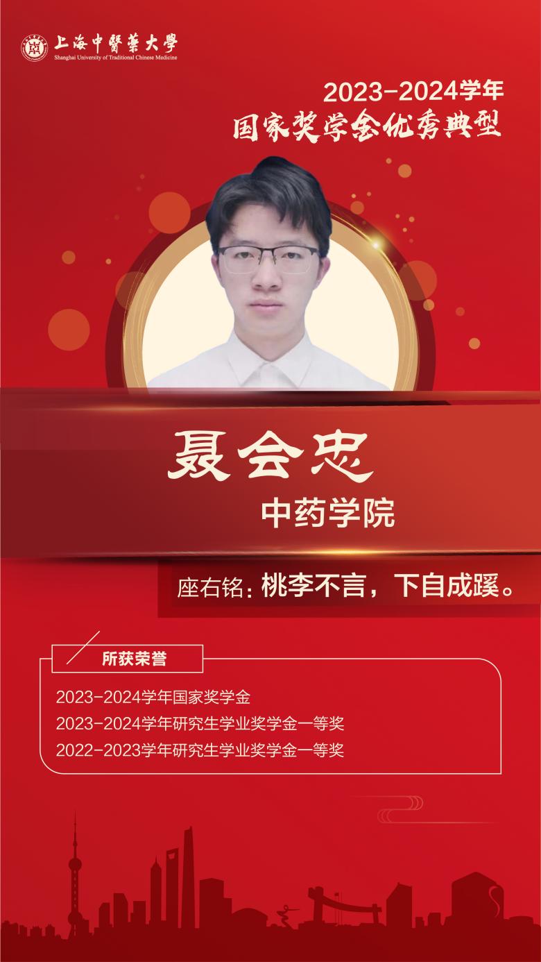 入学以来,坚持积极向上、勤奋好学的生活和学习态度。在政治思想上,本科入学便提交了入党申请书,在研究生阶段转正。本科阶段共一作者发表SCI文章一篇,完成一项中药的传承工作。在获得推免资格后,选择留校读研,进入中药药效物质基础研究的实验室中,并开展了自己的课题研究。除此之外,热衷于志愿服务活动,多次积极参加无偿献血等志愿活动。