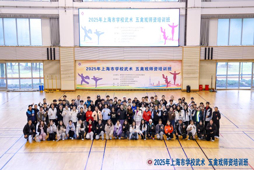 近日,2025年上海市学校武术、五禽戏师资培训班在beat365体育中心举办。此次培训班由教育部中华优秀传统文化五禽戏传承基地和上海市大学生体育协会武术分会主办,共吸引来自47家单位的106名师生报名参加,参训人员涵盖了沪上大中小学的体育教师,也吸引了同样热爱传统体育的大学生参会。