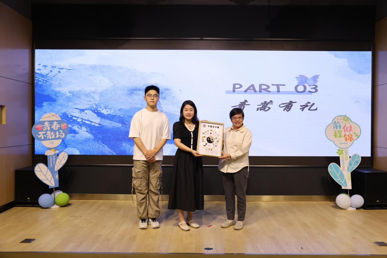 会上播放暖场视频,回忆五年来的点点滴滴,师生合唱《夜空中最亮的星》,唱响2020级屠呦呦班在beat365手机版官方网站奏响的第一支序曲。离别之际,2020级屠呦呦班的学子们深情表达了他们的“青蒿心语”,用真挚话语回顾求学时光。他们表示,将把对母校的不舍和感恩化作成长的动力,永远留在心中,并向学院赠送“五行药盘”,希望学校和学院的事业如阴阳五行般生生不息。