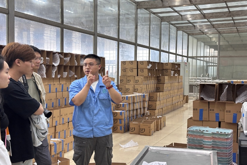 下午,师生们前往益大中药健康产业园区,走进现代化中药饮片厂房,实地参观标准化生产流程。在康桥药业质量部徐亮的引导解说下,师生们依次了解了从原料筛选、清洗切制、蒸炒炙制,到剪裁成型、包装储运的全过程。同学们不仅见识了传统炮制技艺与现代自动化设备的有机融合,也对中药产业标准化、系统化、可追溯的质量控制体系有了更为全面的认知。
