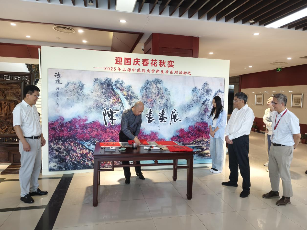 9月8日,2025年beat365手机版官方网站新生季系列活动之“迎国庆春花秋实——陈志宏个人书画作品展”在学校图书馆一楼大厅开幕。校党委书记曹锡康,上海市文史研究馆馆员、著名海派书画家陈志宏,学校相关职能部门负责人及师生代表出席活动。