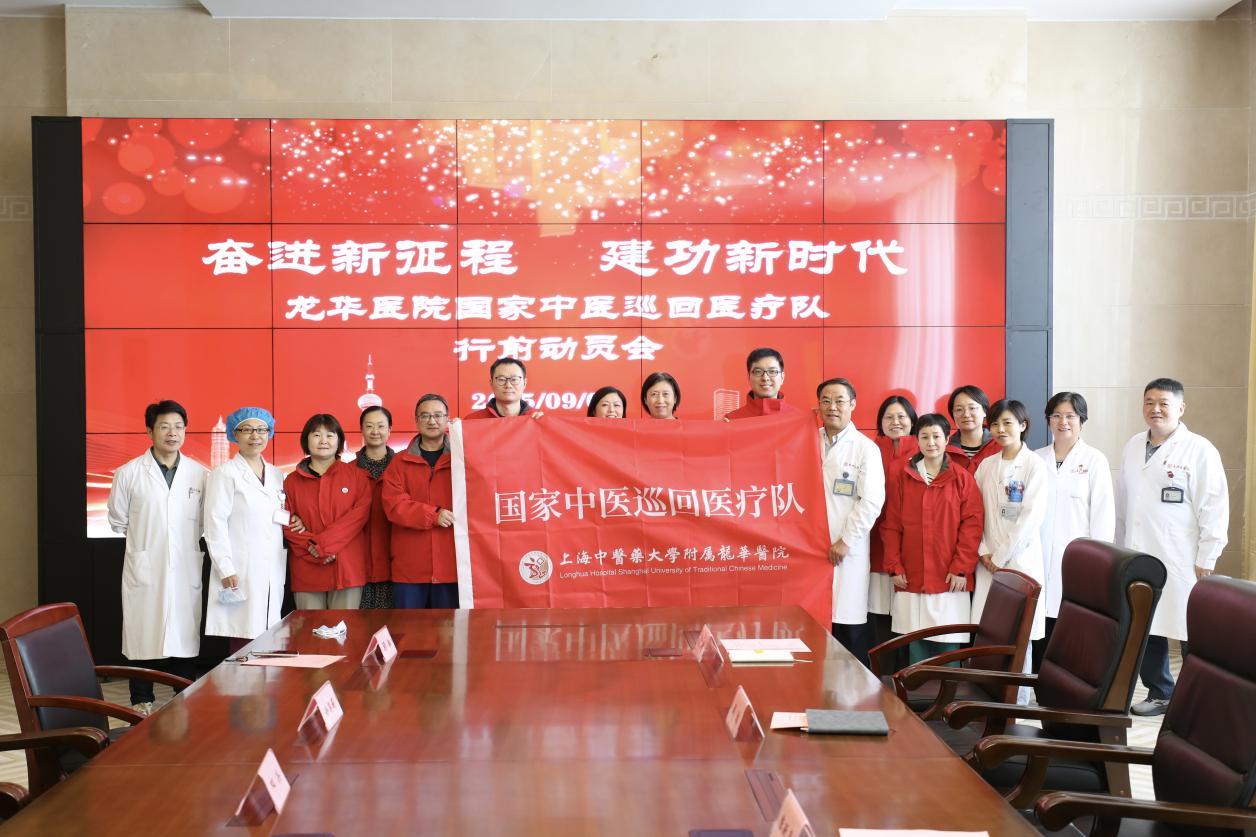 在医疗队的出发前动员会上,医务处副处长王臻楠介绍了医疗队前期筹备工作;医务处副处长田雨,作为领队发言,表示一定以真抓实干的精神,带领团队顺利完成此次国家中医巡回医疗工作。老年医学科主任顾耘教授作为科主任代表发言,希望各位队员珍惜此次巡回医疗的机会,在推广龙华医院中医特色技术的同时,与当地医务人员多多交流学习,团队内部互帮互助,顺利完成此次任务。