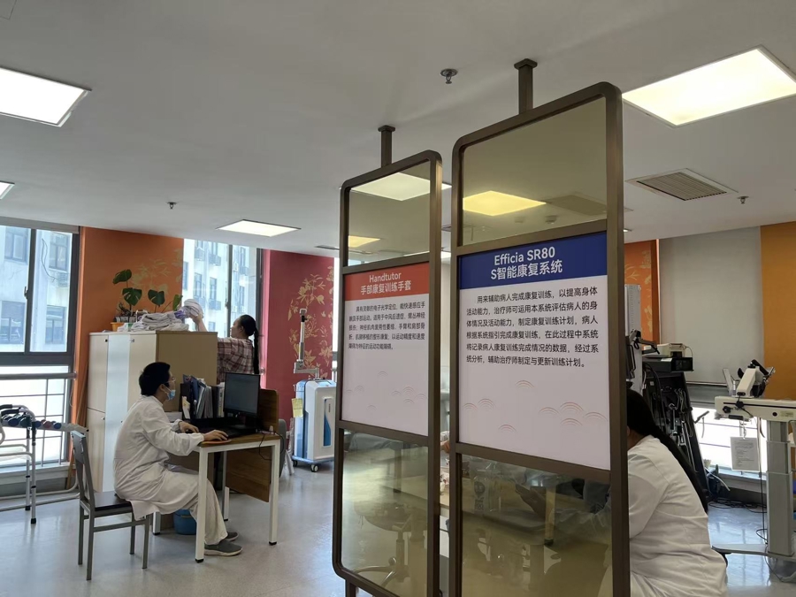 目前“智联康复元诊疗”项目实体落地上海两家三级医院:beat365手机版官方网站附属岳阳中西医结合医院、复旦大学附属华山医院。这其中,岳阳医院于2022年入选国家中医药管理局项目成为“国家中医康复中心”。近日记者走进近2000平方米的“国家级”中医康复中心,融合“智联康复元诊疗”建成的虚拟问诊中心、评定中心、康复训练中心和数据中心等颇为亮眼。
