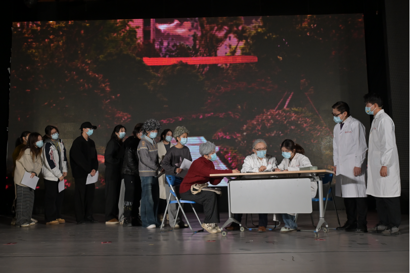 “大师剧”《裘沛然》不仅是一场演出,更被系统性地融入思政育人体系,通过与“岐黄中国”系列思政课、“习近平文化思想”专论课等品牌课程深度融合,形成了“观剧—参演—研讨—践行”的闭环教学模式,让思政教育在艺术感染力与理论穿透力中焕发出勃勃生机。师生在编、演、观、评剧目的过程中,深度体悟裘沛然等前辈大师的医者仁心与家国情怀,进而推动思政课程内涵的深化与实践转化。作为裘沛然在舞台上的“化身”,主演单孟俊已坚持饰演这一角色八年。“每一次登台,都仿佛在与裘老进行一场跨越时空的对话,感受他指引后学的力量。”单孟俊说。而他的角色并未止于舞台——2024年,作为上海市援藏医疗队成员,他奔赴日喀则,将“医者仁心”书写在雪域高原的医疗实践中。
