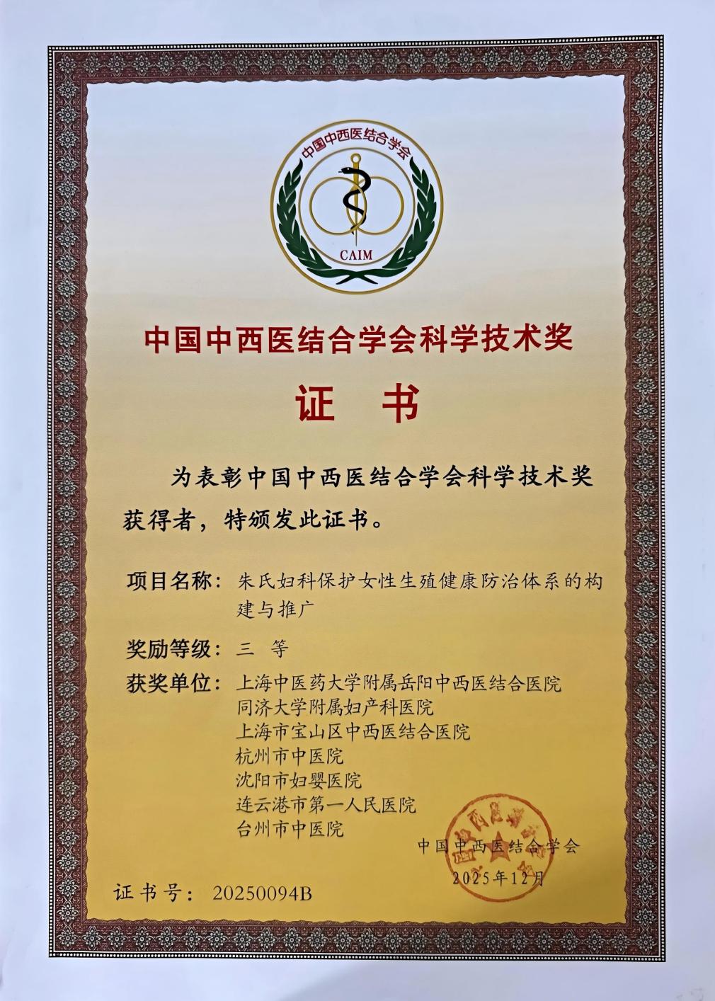 附属岳阳中西医结合医院董莉领衔团队完成的“朱氏妇科保护女性生殖健康防治体系的构建与推广”项目组构建集特色诊疗、三级预防、流派传承、成果转化于一体的女性全生命周期生殖健康防治体系,总结四大优势病种诊疗方案,阐释多款经验方作用机制,开设“卵巢早衰”专科门诊,牵头制定多部专家共识,完成10余项传承工作室建设,成果在14家医院推广并通过多元科普惠及公众,形成可复制推广的“朱氏模式”。