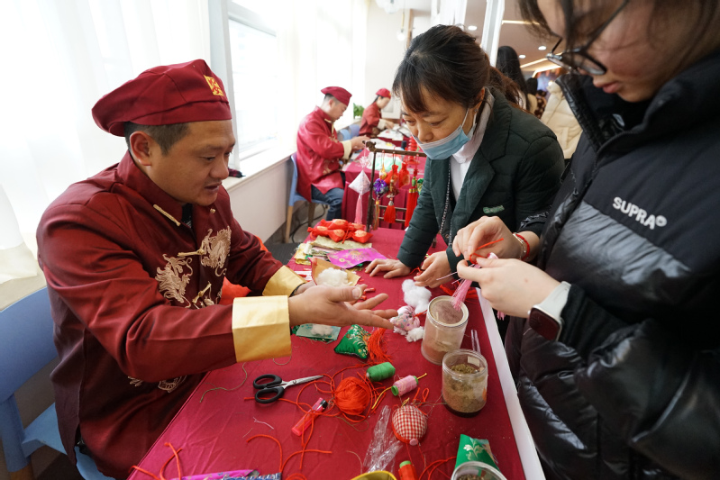 为加深职工对传统文化的体验,本次活动还设置了多项互动环节。冰糖葫芦摊位前,晶莹的糖衣包裹着鲜红山楂,勾起无限儿时回忆;捏面人摊位旁,手工艺人巧手翻飞,捏出栩栩如生的造型,吸引众人驻足赞叹;香囊制作区清香怡人,不少职工亲手挑选配饰,感受传统手作的雅趣;春联书写摊位前也围满了人,书法老师挥毫泼墨,既有“大医德泽,生命曙光”这样融合医院精神的佳句,也有各类传统吉祥对联,寄托了对医院发展与职工福祉的美好期盼。