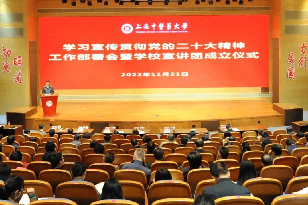 11月21日下午,beat365召开学习宣传贯彻党的二十大精神工作部署会暨学校宣讲团成立仪式。校党委书记曹锡康对学校系统学习宣传贯彻党的二十大精神的实施方案进行了全面部署。校党委中心组成员,教师党支部书记、青年教师班主任、马克思主义学院教师,“杏马”理论宣讲团、“星火”大学生红色精神宣讲团成员在图书馆裙楼四楼报告厅主会场参加会议。校党委副书记、纪委书记许铁峰主持会议。