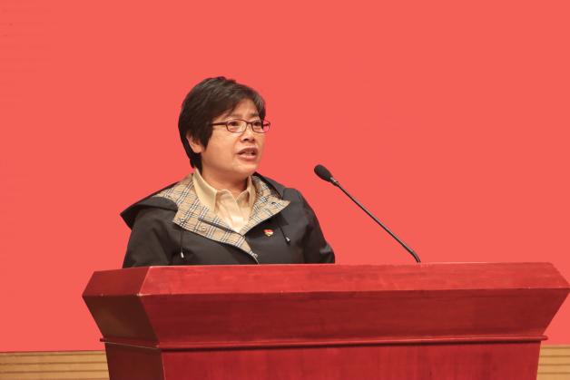 校党委副书记、副校长朱惠蓉宣读学校“杏马”理论宣讲团、“星火”大学生红色精神宣传团成员名单。