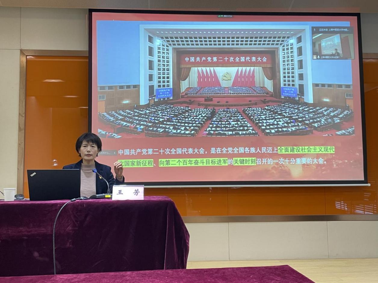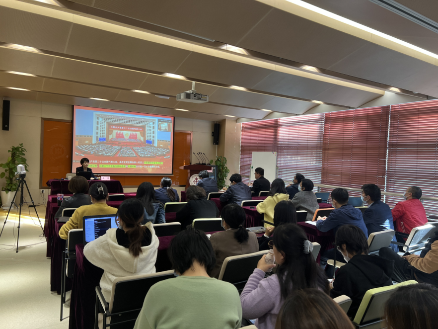 为深入学习宣传贯彻党的二十大精神,将全体师生的思想统一到党的二十大精神上来,1123日下午,中药研究所、科技实验中心、中西医结合研究院联合举办党的二十大精神专题学习会,市教卫工作党委系统学习贯彻党的二十大精神专家宣讲团专家、校“杏马”理论宣讲团成员、马克思主义学院院长王芳教授受邀以伟大自我革命引领伟大社会革命专题辅导报告,会议由中药研究所党总支书记王广东主持。