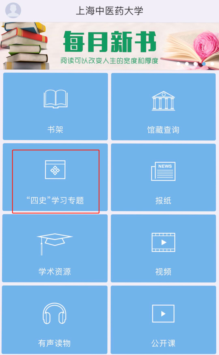 移动端:通过微信公众号访问图书馆“四史”学习专题网站