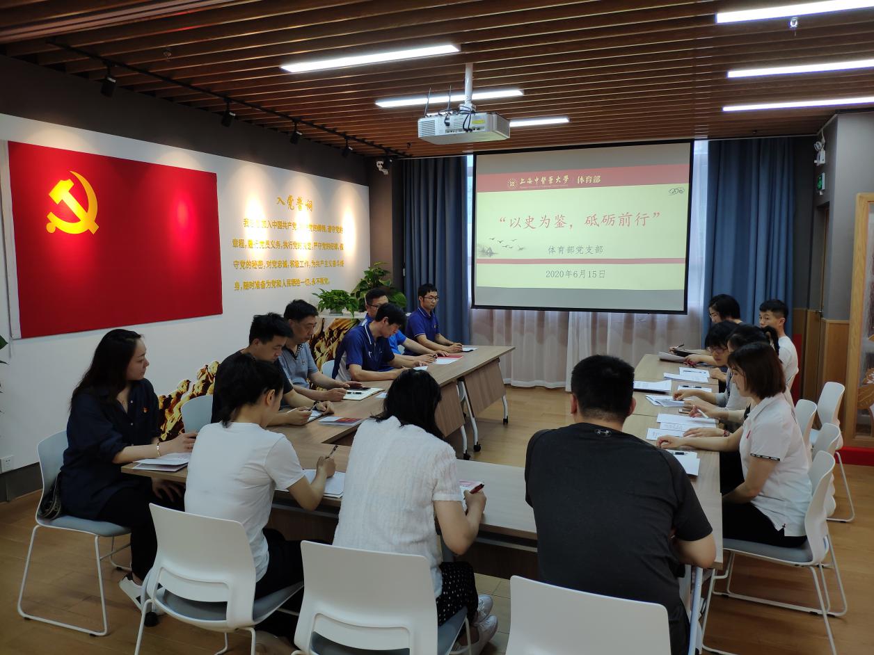 为深入推进落实beat365手机版官方网站党委关于“四史”学习教育的部署要求,6月15日下午,校体育部党支部组织全体党员在学校党建服务中心开展“四史”学习教育专题党课。本次党课由体育部党支部书记龚博敏主持。