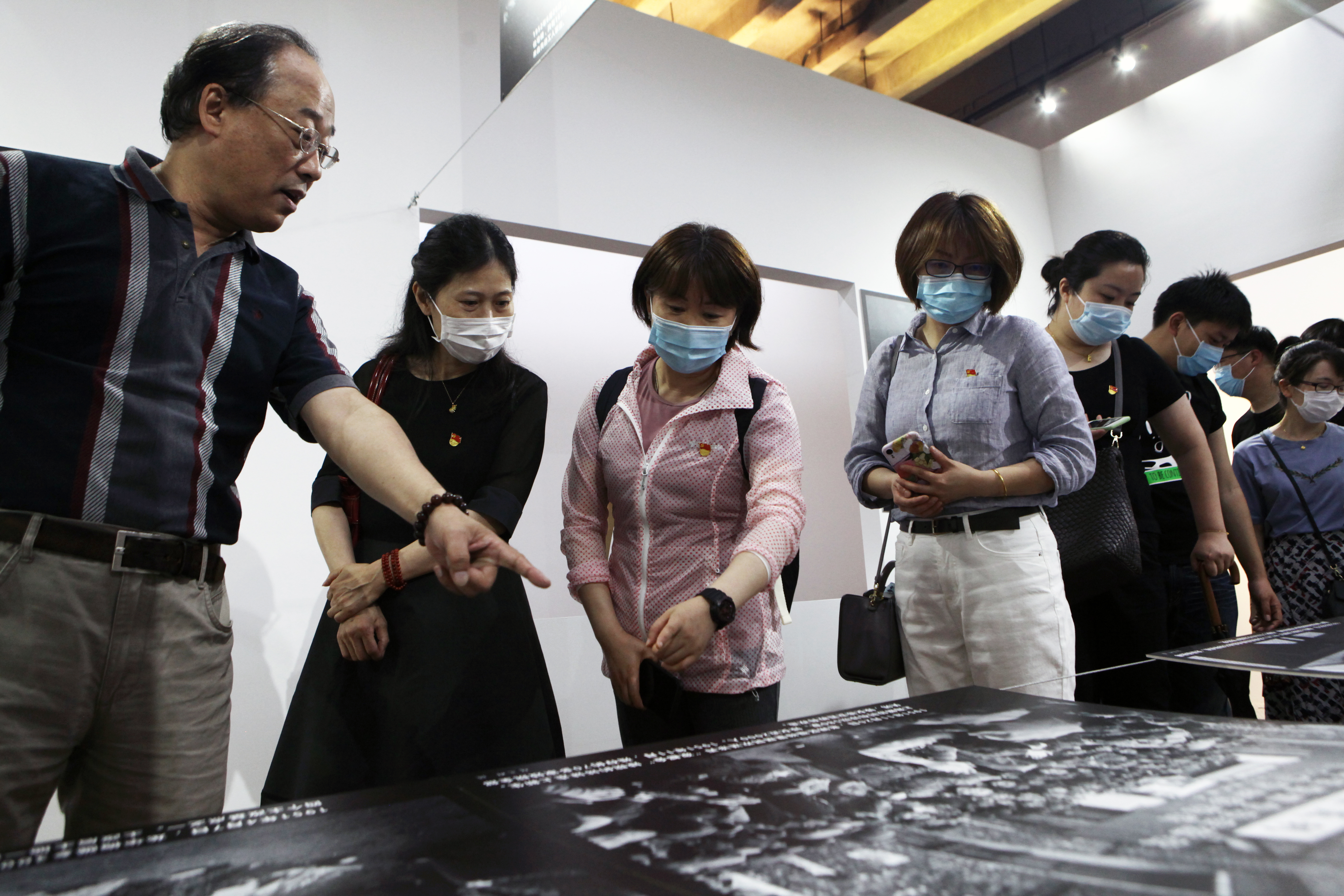 展厅位于严同春旧居二楼,党员们沿着砖木结构四合院的木梯拾级而上,仿佛揭开了尘封的面纱,一步步走进历史,99张珍贵照片将党员们的思绪带回了建国初期的上海。从万吨水压机到第一座黄浦江大桥,从烟酒价格开放到调房自由市场,从“大变样”到新世纪,从世博会到进博会,从科创板、新片区、长三角一体化,到滨江步道、智慧城市、抗击“新冠”、“五五”购物节……历史的一个个瞬间重现眼前。新中国成立后的上海,在党的领导下,历经70多年的奋斗,从百废待兴到现今的风华绝代,跻身世界超级大都市之列,作为新上海成长的见证者,党员们感到无比骄傲。