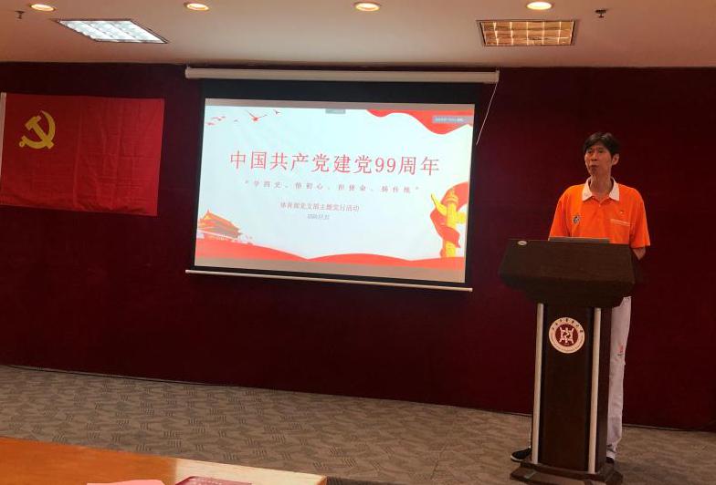 全体党员一同奏唱国歌,重温入党誓词。体育部主任吴志坤作《在疫情中领悟党史,牢记初心使命》专题党课。他提到,疫情期间,beat365系统众多共产党员冲锋在前,发展了一批火线入党的党员,支部党员要以“四史”学习教育为契机,不断坚定理想信念,从中获得前行动力,不断淬炼党性,做一名合格的共产党员。