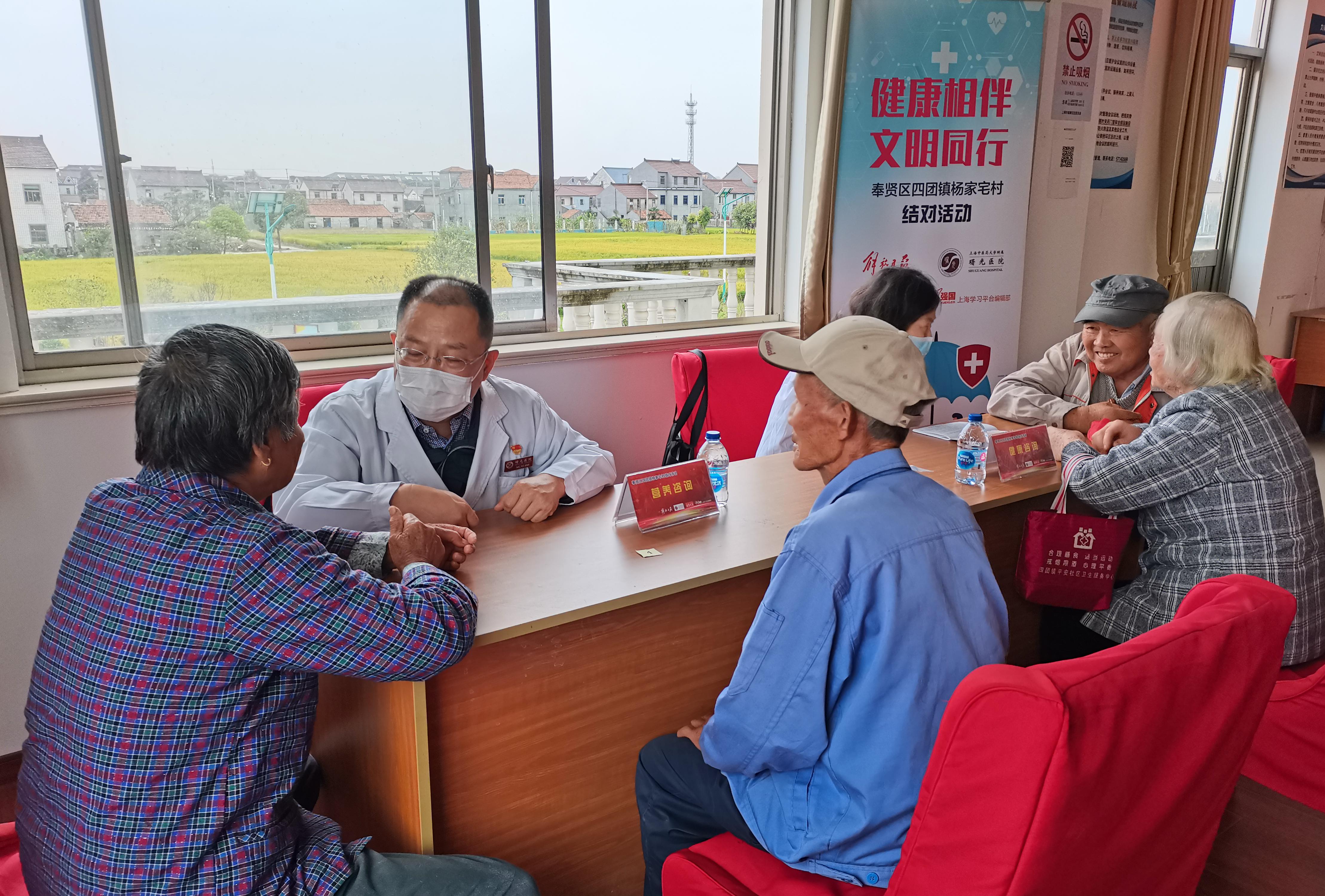 1016曙光医院行政二支部受结对单位解放日报社党委、上海支部生活联合党支部邀请联合医院内科六支部党员在重阳节来临之际,共同前往奉贤区四团镇杨家宅村开展主题为“健康相伴,文明同行”的敬老送温暖主题党日活动。