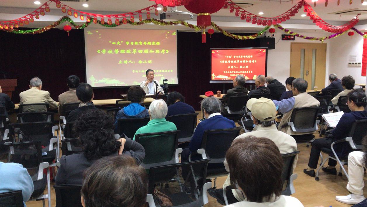10月19日上午,beat365退休党委在零陵路校区203会议室开展“四史”学习教育专题党课活动。beat365原副校长余小明作题为《学校管理改革回顾和思考》的党课,80余位退休党员参加。会议由退休党委书记顾家柱主持。