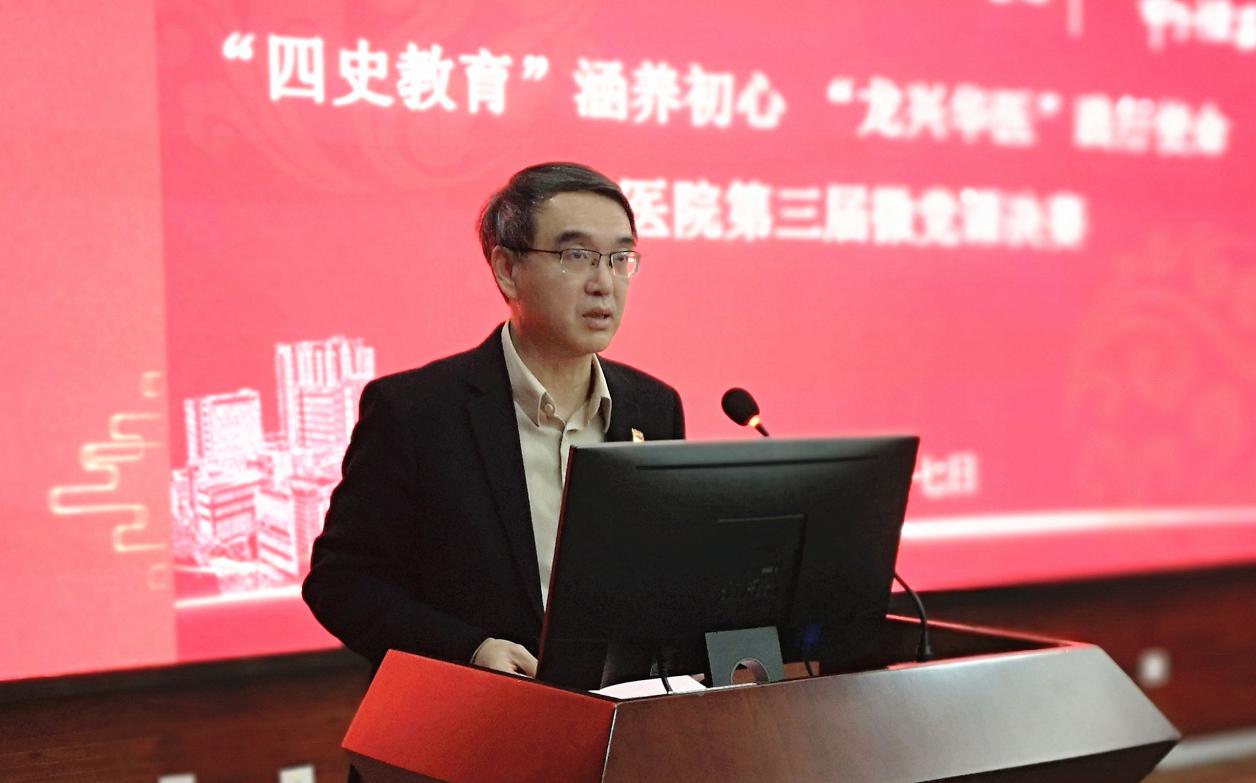 会议首先举行“四史教育涵养初心,龙兴华医践行使命”龙华医院第三届微党课决赛。自2020年6月微党课竞赛开展以来,龙华医院共征集27个微党课作品,经过初赛角逐,专家初审,共有6个微党课进入决赛,为现场评委和观众带来一场精彩的党课盛宴。龙华医院微党课比赛已经成功举办三届,医院党委希望依托这一平台,聚焦支部书记上党课这一要点,通过以赛促学、以赛促建,期待能切实提高医院党支部开展党务工作的基本功;也希望通过党建共建这一平台,让优秀的微党课能够走出医院,让更多的人听到龙医人的声音。