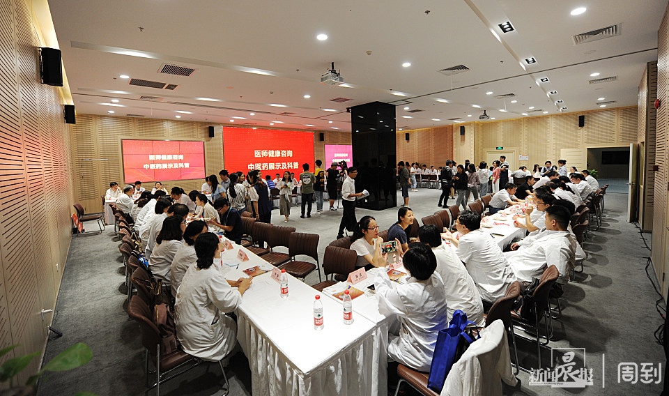 龙华医院养身功法展示和互动环节,吸引众多“粉丝”围观,曙光医院膏方科普展示区和岳阳中西医结合医院的名贵中草药辨识点也因切合季节养生需求成为白领们的关注点和驻足处。
